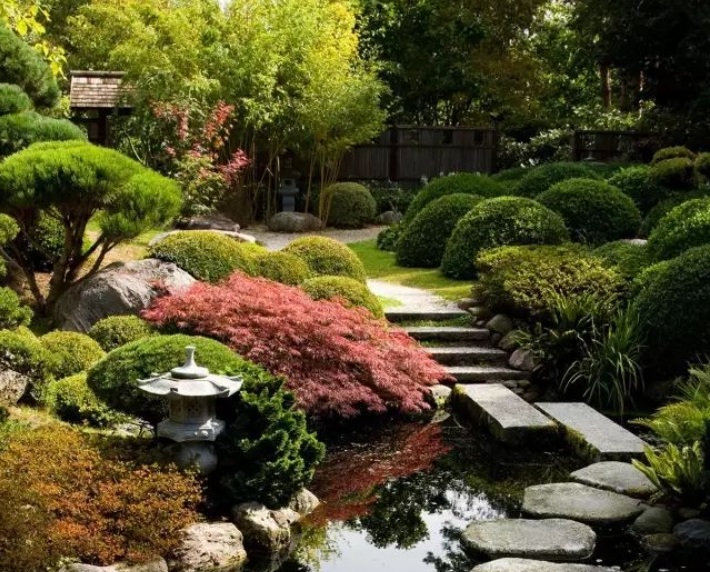 庭院的布局其實有很多規律可循,例如在我國的文學藝術作品當中,常用的起、承、轉、合,運用到園林的布局上便體現為疏、密、曲、直,可以通過高矮大小植物的排列組合,讓空間更有層次感、色彩感,還可以打造出舒適自在的感覺。